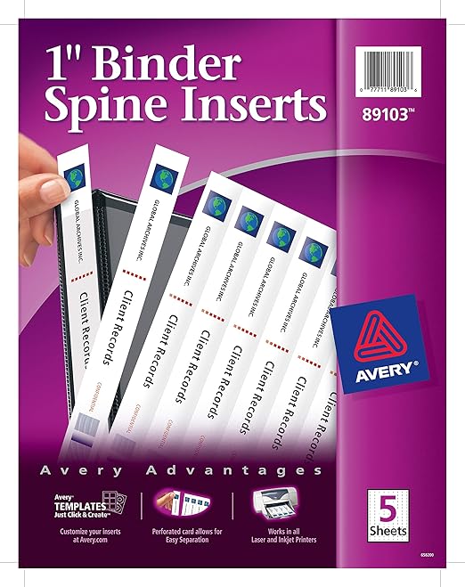 Amazon Com Avery 89101 Custom Binder Spine Inserts 1 2 Spine Width 16 Inserts Sheet 5 Sheets Pack Binding Spines Office Products
