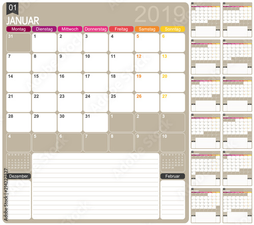 German Calendar 2019 German Calendar Template For Year 2019 Set Of 12 Months Week Starts On Monday Printable Calendar Templates Buy This Stock Vector And Explore Similar Vectors At Adobe Stock Adobe Stock