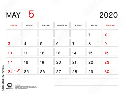 May 2020 Year Template Calendar 2020 Vector Desk Calendar Design Week Start On Sunday Planner Stationery Printing Size 8 X 6 Inch Buy This Stock Vector And Explore Similar Vectors At Adobe Stock Adobe Stock