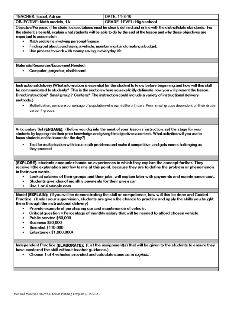 5e student lesson planning template author. Useful 5e instructional model lesson plans gradual release i do gradual release of responsibility lesso the 5e version of preparation became precisely what i needed to streamline the process of planning and enforcing a scholar led inquiry based learning method. The 5et model sample lesson plan.