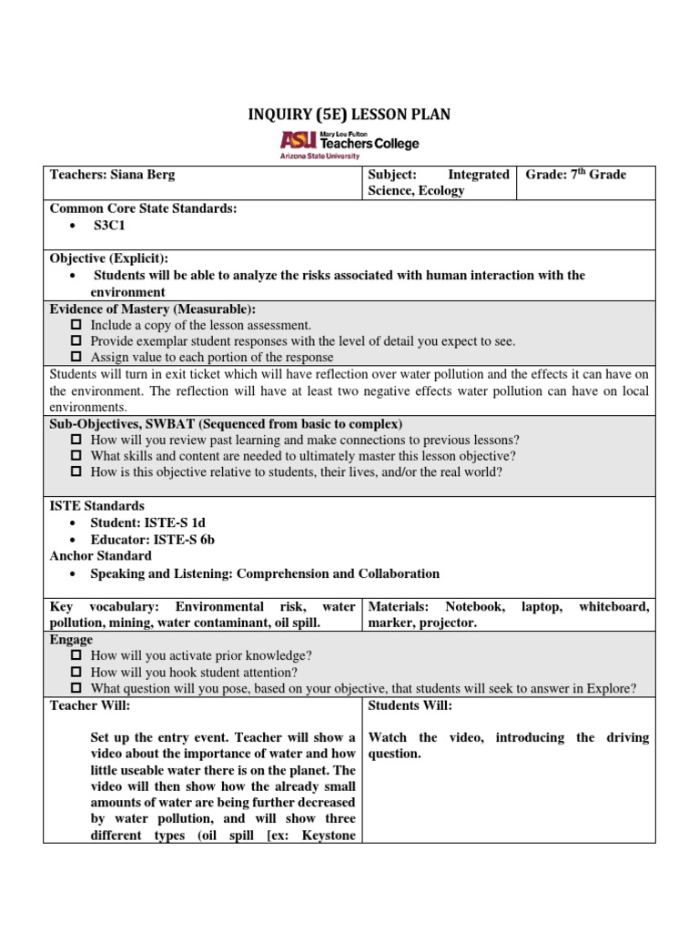 Edc274 5e Lesson Plan Pollution Lesson Plan Cognition