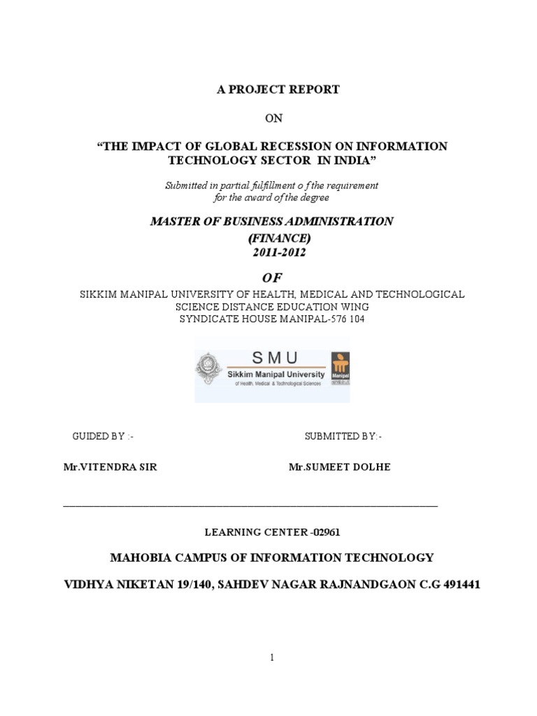 By Sumeet Dolhe The Impact Of Global Recession On Information Technology Sector In India Recession Economic Growth