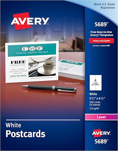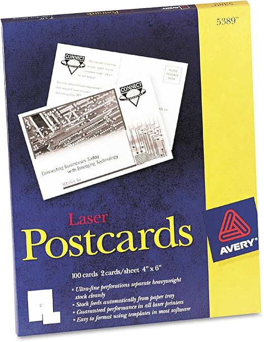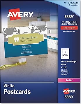 Amazon Com Avery 5889 Postcards Color Laser Printing 4 X 6 Uncoated White 2 Cards Per Sheet Box Of 80 Blank Postcards Office Products
